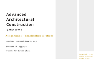 Project 2 is aligned with current studio design project which aims to facilitate them in the technical studies of their design. Consists of two parts, the first part deals with the analysis and establishment of the structural and the envelope systems of our design. This is to ensure that the design has logical and workable construction systems and at the same time encouraging us to include construction as part of the design and not just “tools” to build it. The second part is a continuation from the first where we need to show in the final presentation drawings of the project, evidences of the previous studies being implemented in the design. The main drawings for this part will be the detail sectional drawing of the design which is also one of the requirements of the design studio.